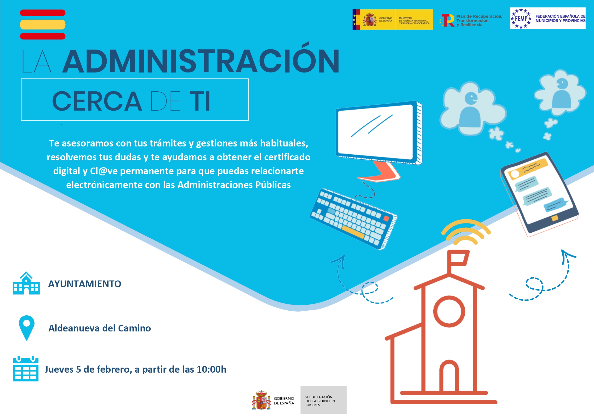Te asesoramos con tus trámites y gestiones más habituales, resolvemos tus dudas y te ayudamos a obtener el certificado digital y Cl@ve permanente para que puedas relacionarte electrónicamente con las Administraciones Públicas.